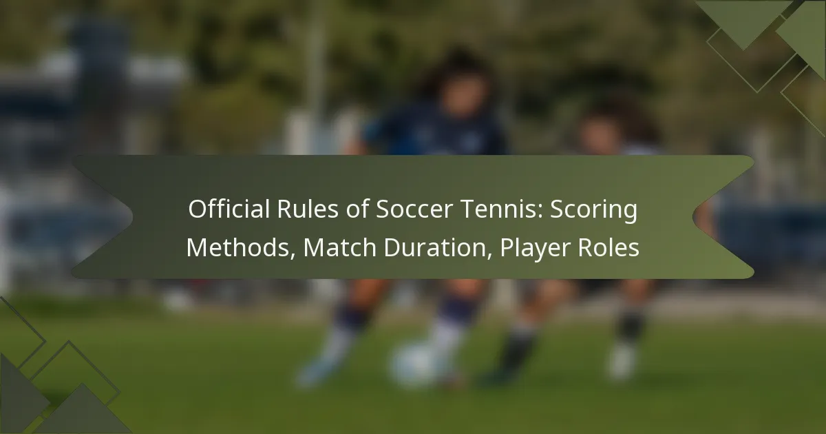 Soccer tennis combines elements of soccer and tennis, utilising a point system where players or teams score by winning rallies. Matches can be played in singles or doubles formats, typically lasting between 30 to 60 minutes, and involve specific scoring rules. Player roles are essential, as each participant has defined responsibilities that impact the team’s overall strategy and performance.