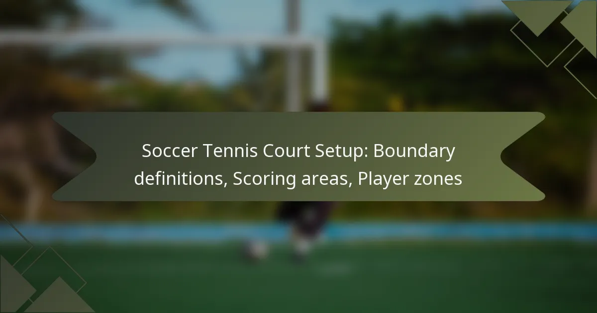 Setting up a soccer tennis court involves precise boundary definitions that establish the playing area and promote fair play. Key components include designated scoring areas that influence point accumulation and specific player zones that dictate player positioning and movement during matches. Understanding these elements is essential for effective gameplay and strategy development.
